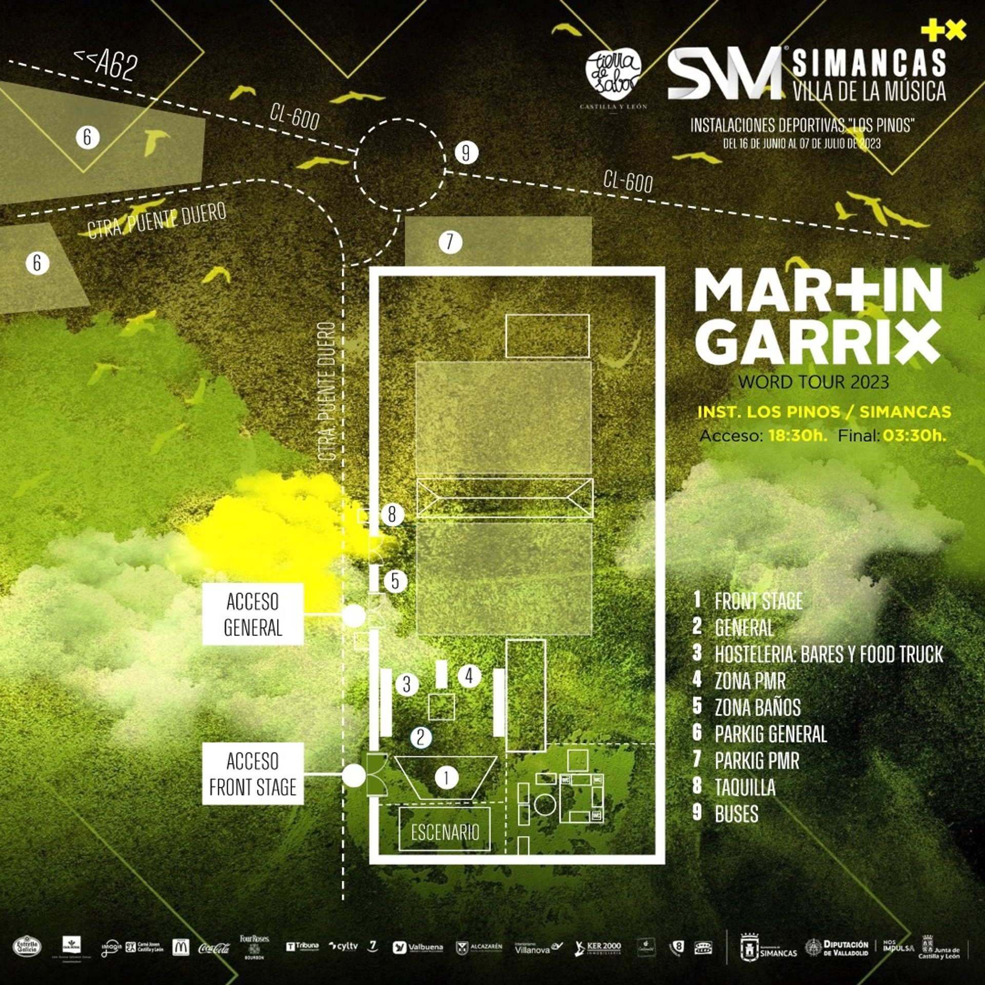 El Ayuntamiento de Simancas y los organizadores de Simancas Villa de la Música prevén un completo plan de accesibilidad y estacionamientos habilitados para la ocasión, limítrofes a 'Los Pinos', donde tendrá lugar el espectáculo de Martín Garrix, con el único objetivo de facilitar los accesos al recinto de forma cómoda y segura.