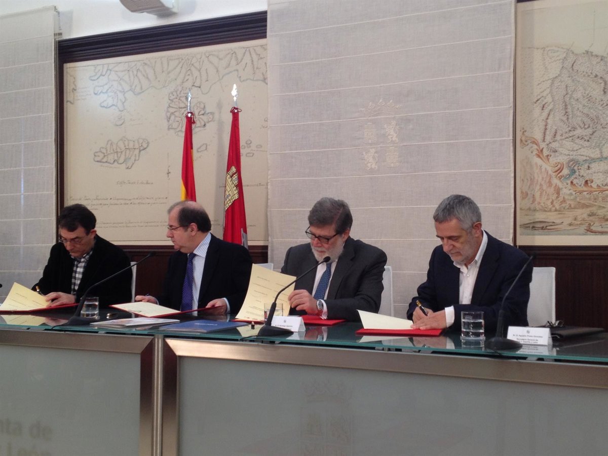 El Plan de Estímulos al Crecimiento y al Empleo ha sido renovado con la rúbrica de este nuevo documento por parte del presidente de la Junta, Juan Vicente Herrera, del presidente de Cecale, Santiago Aparicio, y de los secretario regionales de UGT y CC.OO, Agustín Prieto y Ángel Hernández, quienes han destacado su apuesta por la consecución de acuerdos para impulsar políticas "útiles" para los ciudadanos.