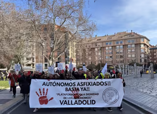 Detrás de una pancarta en la que recalcan que están "asfixiados" y reclaman de manera contundente que "Basta ya" y tras la lectura de un manifiesto a cargo de la portavoz, Nuria Díaz, los dos centenares de autónomos vallisoletanos han recorrido el trayecto entre la plaza de la Universidad y la Plaza Mayor de Valladolid en una soleada pero fresca mañana de lunes.