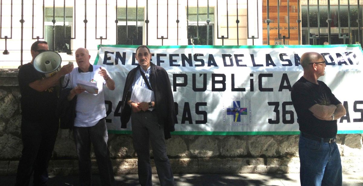 La Plataforma en Defensa de la Sanidad Pública ha llevado a cabo una concentración ante la sede de la Consejería, el antiguo Hospital Militar de Valladolid, para recalcar que el responsable del área, Antonio Sáez Aguado "miente" y que los recortes tienen consecuencias en la calidad de vida y en la salud de los ciudadanos.