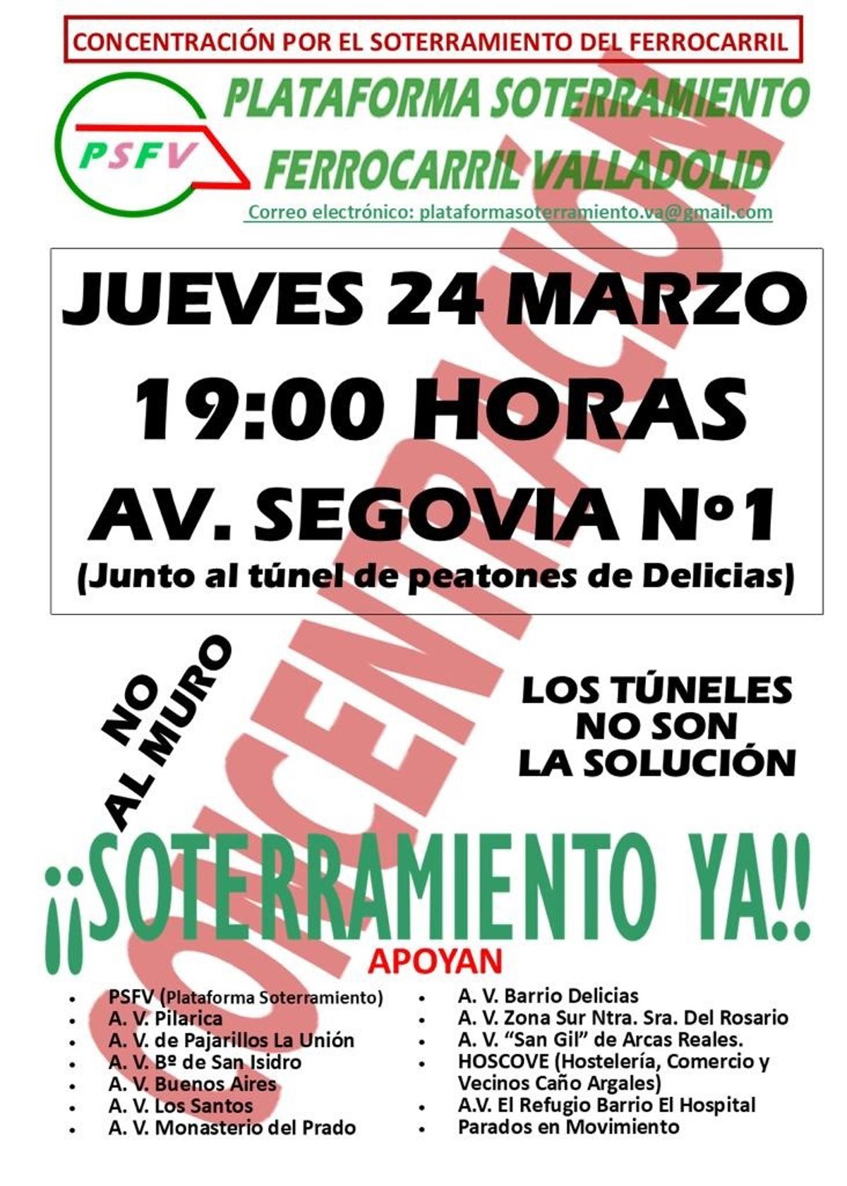 Convocatoria de concentración de la Plataforma por el Soterramiento del Ferrocarril en Valladolid para el próximo 24 de marzo. - PLATAFORMA SOTERRAMIENTO DEL FERROCARRIL