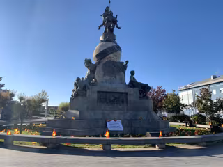 Este 12 de octubre, la presencia de los simpatizantes de Vox ha dejado la estatua y la plaza rodeada de 'banderitas' de España, en un acto similar al que se ha realizado en los últimos días en otras capitales españolas.