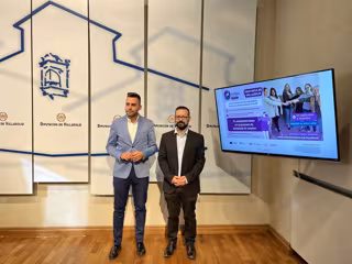 El diputado de Empleo, Desarrollo Económico y Reto Demográfico, Roberto Migallón, junto al director de Fundación Santa María la Real, Álvaro Retortillo, han presentado este jueves, 12 de septiembre, el programa que se impartirá de forma gratuita y que permitirá reactivar su búsqueda de trabajo con "nuevas técnicas y herramientas digitales, para mejorar su empleabilidad y fomentar su inserción".