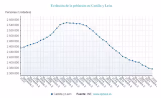 Gráfico de elaboración propia sobre la evolución de los datos de población en CyL hasta el 1 de enero de 2022 - EPDATA