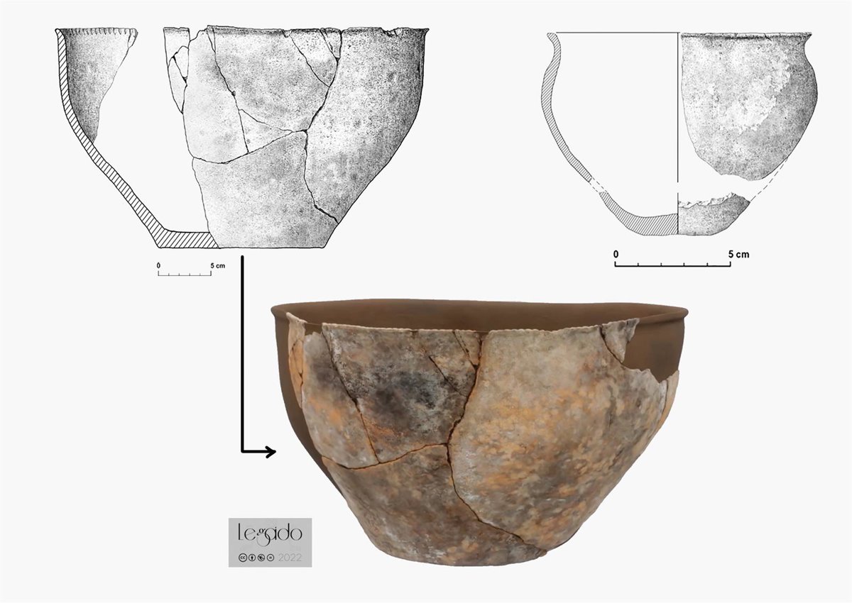 Dibujo arqueológico y fotogrametría restituida de los recipientes cerámicos analizados. - ERESMA ARQUEOLÓGICO