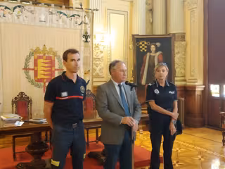 El jefe de Bomberos, Javier Reinoso, el concejal de Salud Pública y Seguridad Ciudadana, José Antonio Otero y la intendente jefa de la Policía Municipal de Valladolid, Julia González. - EUROPA PRESS
