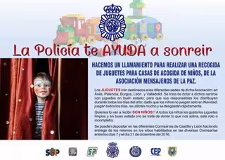 La Policía Nacional ha puesto en marcha en Castilla y León una campaña con el título es 'La Policía te ayuda a sonreir' y que tiene como fin recoger juguetes y, sobre todo, materiales deportivos para los niños que se encuentran en los hogares infantiles y comedores sociales que la ONG Mensajeros de la Paz atiende en la Comunidad.