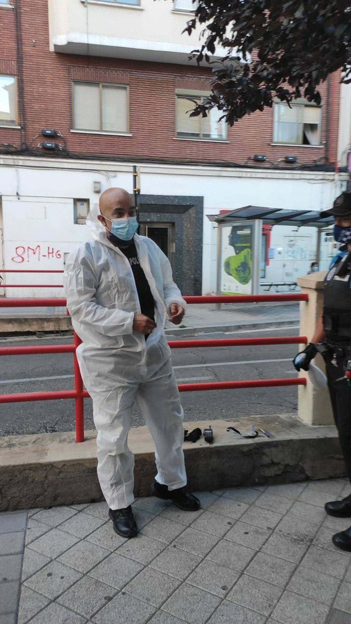 Uno de los agentes que intervinieron con el equipo de protección frente a COVID. - @POLICIAVLL