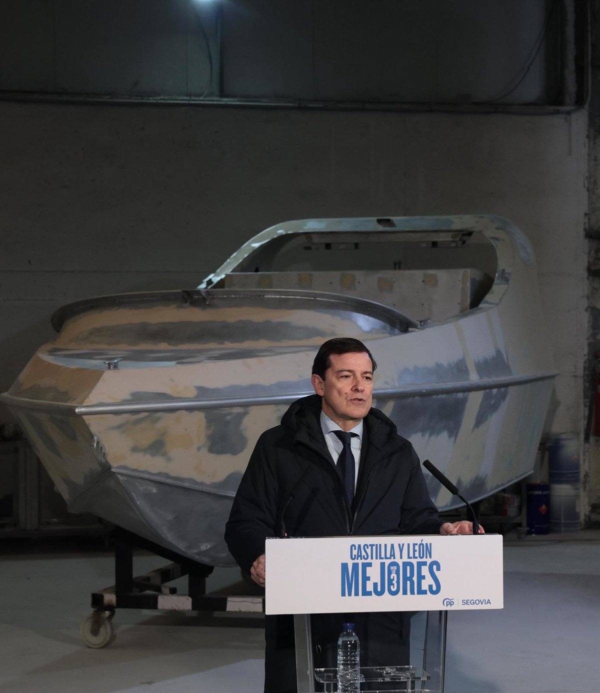 Fernández Mañueco en su visita este lunes a las instalaciones de la empresa 'Moggaro Aluminium Yachts' en Valverde del Majano (Segovia) - PP
