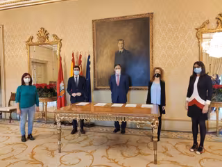 Con un acto conjunto en el Salón de Recepciones, los representantes de los cuatro grupos, entre ellos el alcalde, Carlos García Carbayo, han rubricado el documento que viene a "actualizar" el inicialmente suscrito en mayo, al que se incorporan nuevas medidas y modifican otras, como la flexibilización de algunas ayudas para las empresas o para las familias más vulnerables y en riesgo de exclusión.