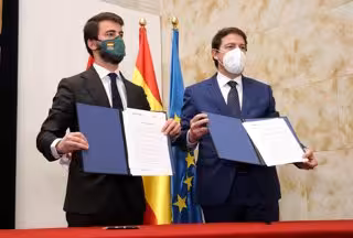 De este modo, Alfonso Fernández Mañueco ha garantizado ante García-Gallardo que cumple sus compromisos por encima de su interés personal y de partido, a lo que el responsable de VOX ha señalado que la rúbrica de este jueves avanza hacia una unión "estable, duradera y fructífera".