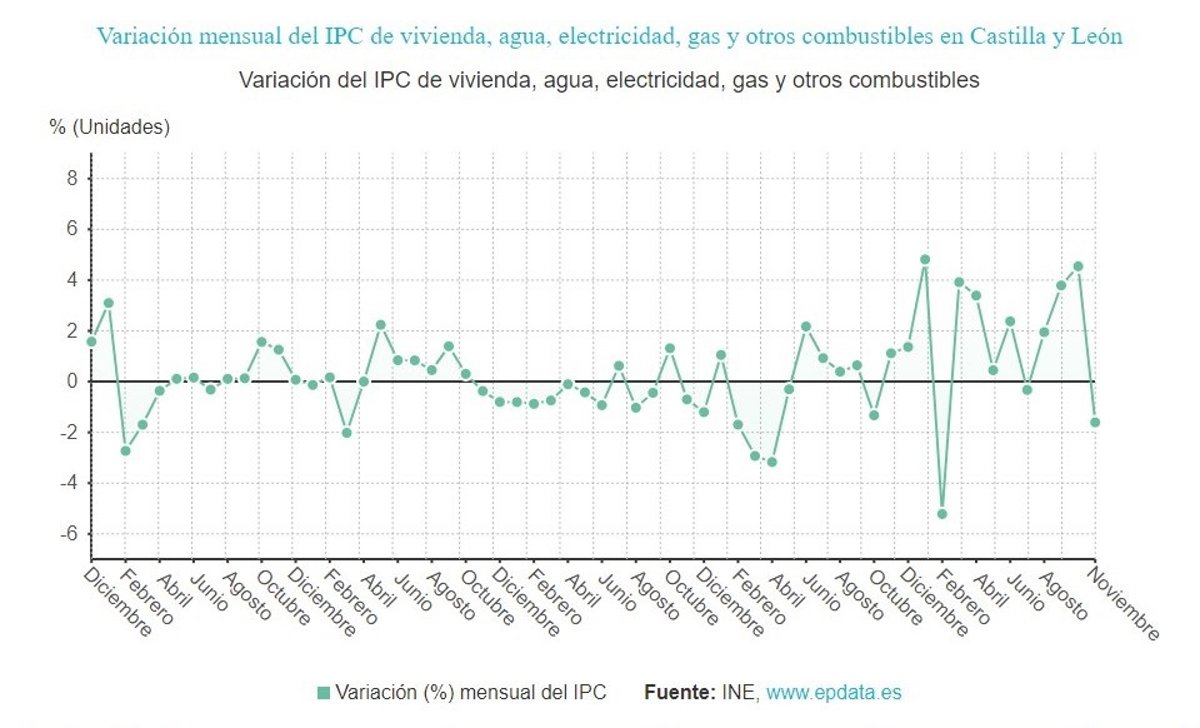 Gráfico de elaboración propia sobre la evolución de una de las partidas del IPC en CyL hasta noviembre de 2021 - EPDATA