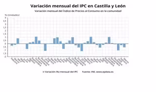 Por provincias, los precios cayeron especialmente en León, Salamanca y en Segovia, con un 0,7 por ciento menos respecto al mes anterior en todas y una evolución interanual del -0,7; 0,1 y del -0,1 por ciento respectivamente. Le sigue Valladolid con un -0,6 por ciento, y una evolución interanual del -0,2 por ciento.