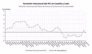 El Índice de Precios de Consumo (IPC) cayó siete décimas en febrero respecto al mes anterior, una más que en España (-0,6 por ciento), y la tasa interanual (es decir, la variación de los precios registrada durante los últimos doce meses) cae medio punto hasta el -0,1 por ciento en Castilla y León, mayor que la media del país, que pasa al -0,0 por ciento, según los datos hechos públicos por el Instituto Nacional de Estadística (INE) y recogidos por Europa Press.