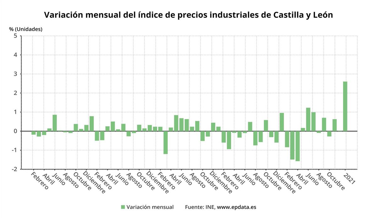 Los precios industriales en Castilla y León aumentaron un 2,6 por ciento el pasado mes de enero en relación al mes anterior, por debajo de la media del país donde se dispararon un 3,4 por ciento, su mayor subida en casi 40 años, y avanzaron un 2,0 por ciento en tasa interanual, por encima en este caso de la media que, con un 0,9 por ciento, volvió a tasas positivas por primera vez en año y medio, según ha informado este jueves el Instituto Nacional de Estadística (INE).