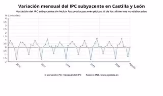 Gráfico de elaboración propia sobre la evolución del IPC subyacente en agosto en CyL - EPDATA
