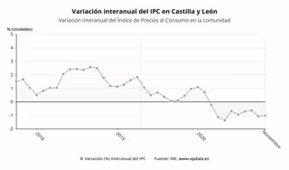 El Índice de Precios de Consumo (IPC) aumentó dos décimas en noviembre respecto al mes anterior, como en España), y la tasa interanual (es decir, la variación de los precios registrada durante los últimos doce meses) cae una décima hasta el -1,0 por ciento en Castilla y León, mayor que la media del país, que se mantiene en el -0,8 por ciento, según los datos hechos públicos por el Instituto Nacional de Estadística (INE) y recogidos por Europa Press.