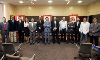 La firma del convenio de colaboración contó también con la presencia de algunos de los directores territoriales de RTVCyL: Florencio Carrera (Valladolid), Juan Francisco Martín (León), Juan Carlos López Pinto (Salamanca) y Eva Crespo (Zamora), además del director de Producción Propia, Francisco Temprano, y la coordinadora de contenidos de Producción Propia, Faela Sainz Rojo.