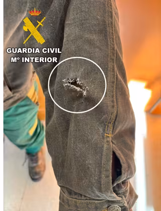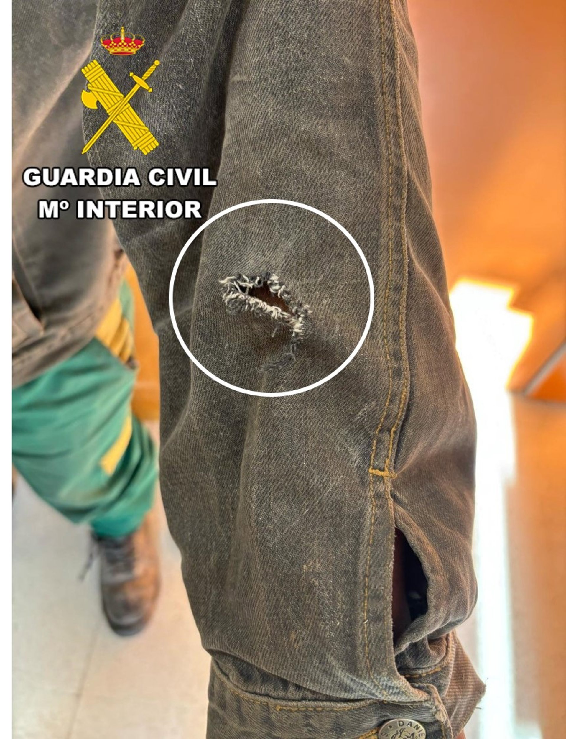A prisión en Burgos dos jóvenes por robar y perforar con una navaja la cazadora de la víctima, que salió ilesa. Imagen de la cazadora de la víctima perforada por un arma blanca. - GUARDIA CIVIL BURGOS