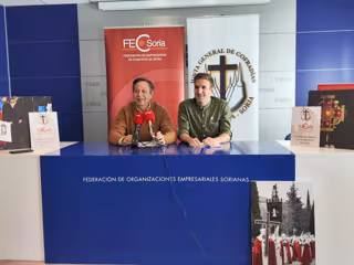 El presidente de la Federación de Comercios de Soria (FECSoria), junto al vocal de la Junta de Cofradías, Adrián del Amo, han presentado esta iniciativa que se celebra por segundo año en la ciudad tras la gran acogida de la primera edición y donde el comercio y esta celebración religiosa van de la mano.