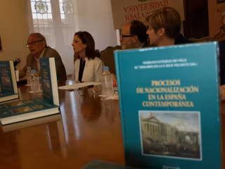 En la presentación del libro, que ha tenido lugar esta mañana en la Sala de Retratos del Rectorado de Salamanca, han estado presentes Mariano Esteban de Vega y María Dolores de la Calle Velasco, en representación de la Universidad de Salamanca (USAL); Justo Beramendi, de la Universidad de Santiago; Luis Castells, de la institución del País Vasco; Jordi Pomés, de la Autónoma de Barcelona; y la directora de Ediciones Universidad de Salamanca, María José Rodríguez Sánchez de León.
