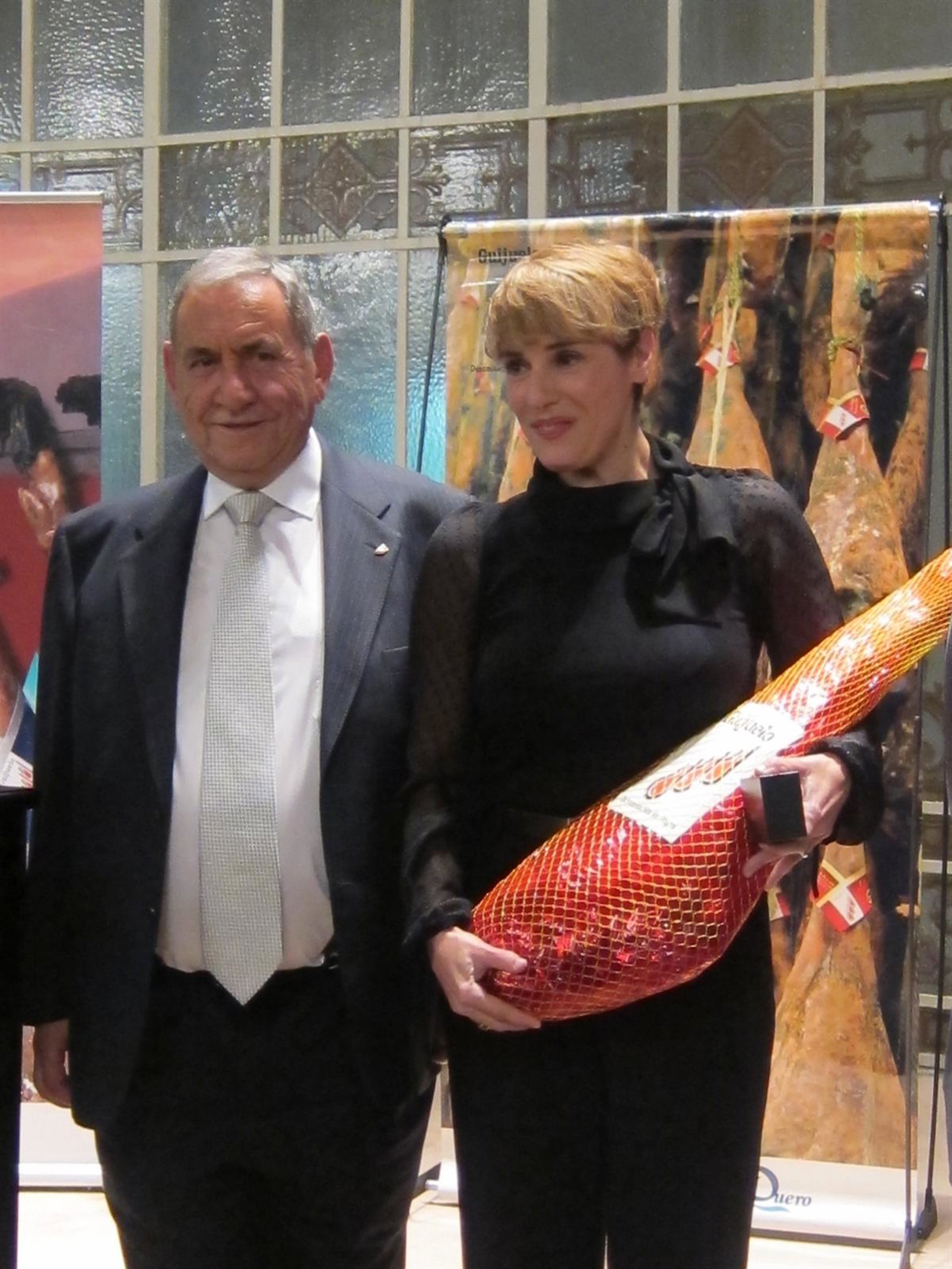 Durante el acto, Rubio presentó a Anabel Alonso como madrina de honor, vinculada familiarmente a la comarca. Tras mostrarse "contenta" por recibir esta distinción, la actriz ha manifestado su "orgullo" por ser "embajadora" de un producto como el jamón de Guijuelo que es "de alta calidad". "Espero ser una digna madrina", ha apostillado tras recibir la distinción y un jamón de bellota.