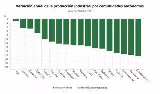 El Índice General de Producción Industrial (IPI) ha bajado un 1,1 por ciento interanual el pasado mes de marzo en Castilla y León, la menor caída del país y 10,2 puntos menos que la media nacional, que se ha reducido un 11,3 por ciento, según datos publicados por el Instituto Nacional de Estadística (INE).