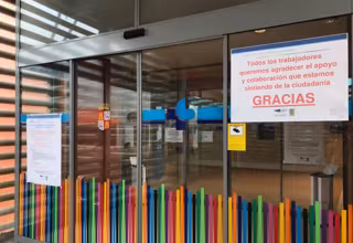 "Todos los trabajadores queremos agradecer el apoyo y colaboración que estamos sintiendo de la ciudadanía. Gracias --en letras mayúsculas--", señalan estos carteles con los que los profesionales de la sanidad castellanoleonesa quieren responder a los ciudadanos en esta complicada situación.