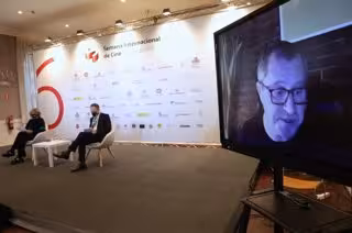 Vadim Perelman, director de 'Persian Lessons', interviene vía streaming durante una rueda de prensa. - SEMINCI