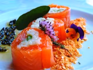 "Hemos recordado el plato tradicional de trucha rellena de jamón, dos ingredientes que se acompañan muy bien y lo hemos modernizado con un marinado que permite disfrutar al máximo a la calidad del pescado y dándole una forma que recuerda a los makis japoneses", explica.