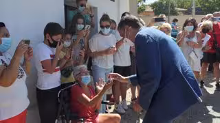 "Para Francisca, con cariño. Pedro", le ha estampado en la escayola ante el agradecimiento de su propietaria, que junto al presidente ha sido ovacionada.