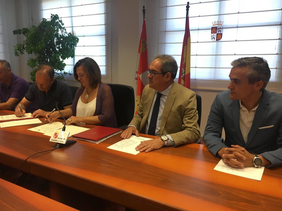 La consejera de Agricultura y Ganadería, Milagros Marcos, ha firmado este miércoles un convenio de colaboración con la comunidad de regantes de Río Tirón, en Burgos, que abarca a cerca de 100 agricultores, para abaratar los costes del regadío a los asociados.
