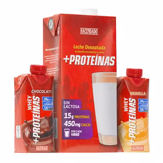 El producto presenta una variedad de Bebida láctea +Proteínas Hacendado, que son batidos UHT listos para consumir enriquecidos con proteína de suero de leche, sin lactosa y sin azúcares añadidos. Se trata de la primera bebida de estas características conservable a temperatura ambiente desarrollada en España. Los batidos, que se presentan en dos sabores (chocolate y vainilla), son bajos en grasa e hidratos de carbono y presentan altos niveles de vitamina B6.