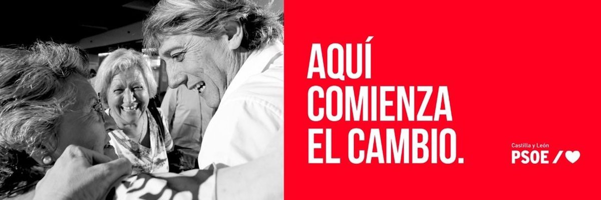 Cartel de la precampaña electoral del PSCL con el lema 'Aquí comienza el cambio' - PSOE