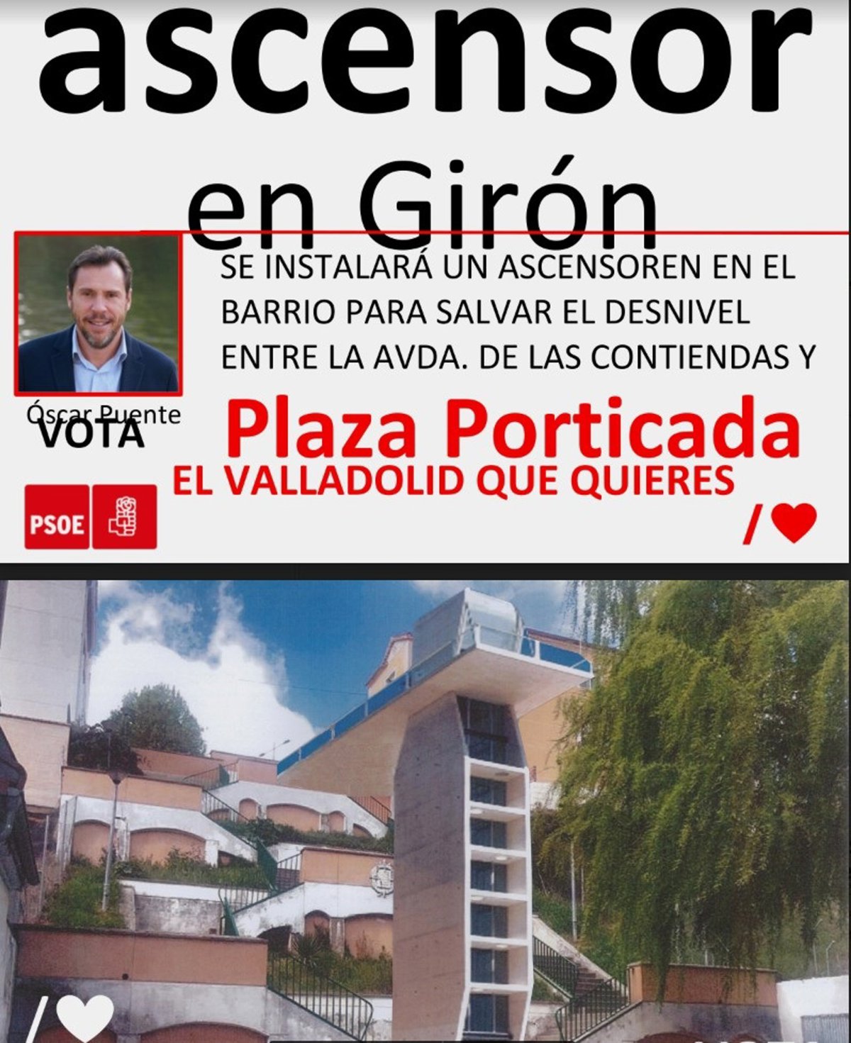 Así, el PSOE ha editado varios folletos informativos que se reparten desde hace unos días a los vecinos de las zonas en las que se ubican dichos proyectos, la mayor parte de los cuales se refieren a nuevos ascensores urbanos para salvar desniveles en Girón, Parquesol y entre Pajarillos y San Isidro.