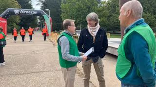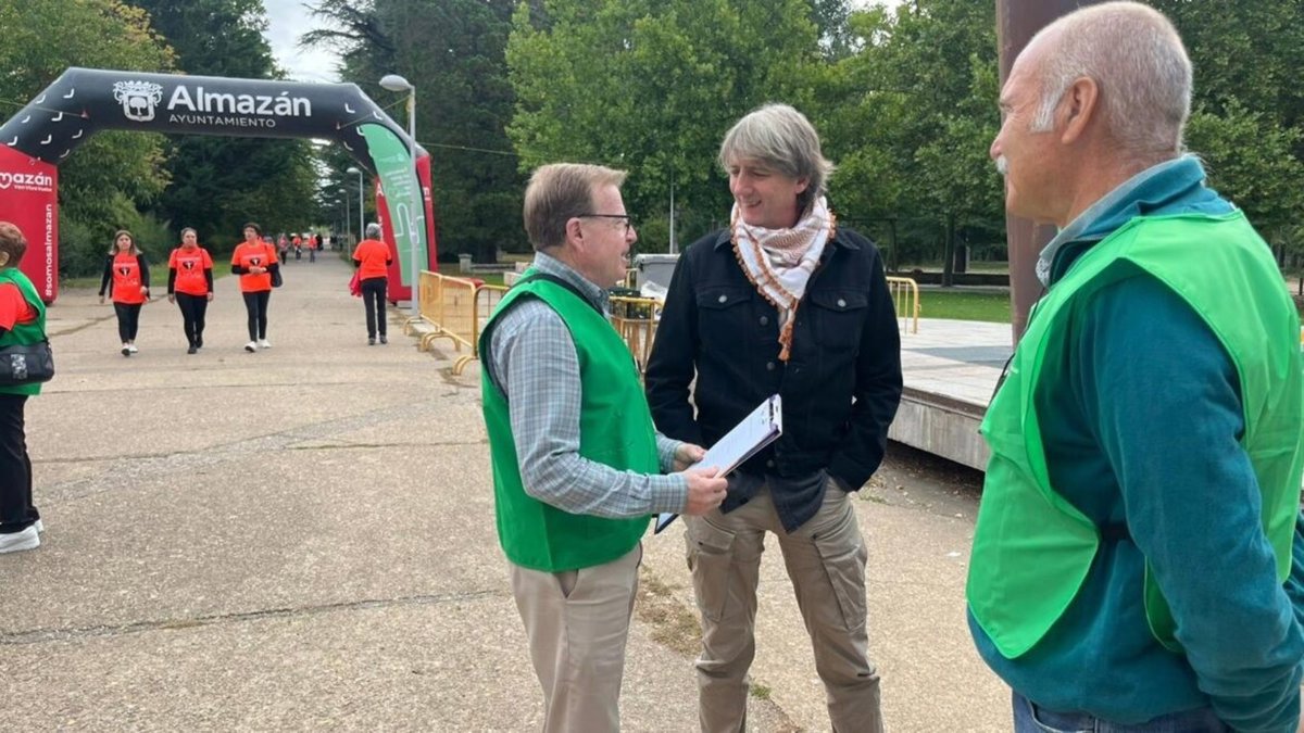 El secretario general del PSOE de Castilla y León, Carlos Martínez, junto a algunos organizadores de la Marcha contra el Cáncer en Almazán (Soria). - PSOE CYL