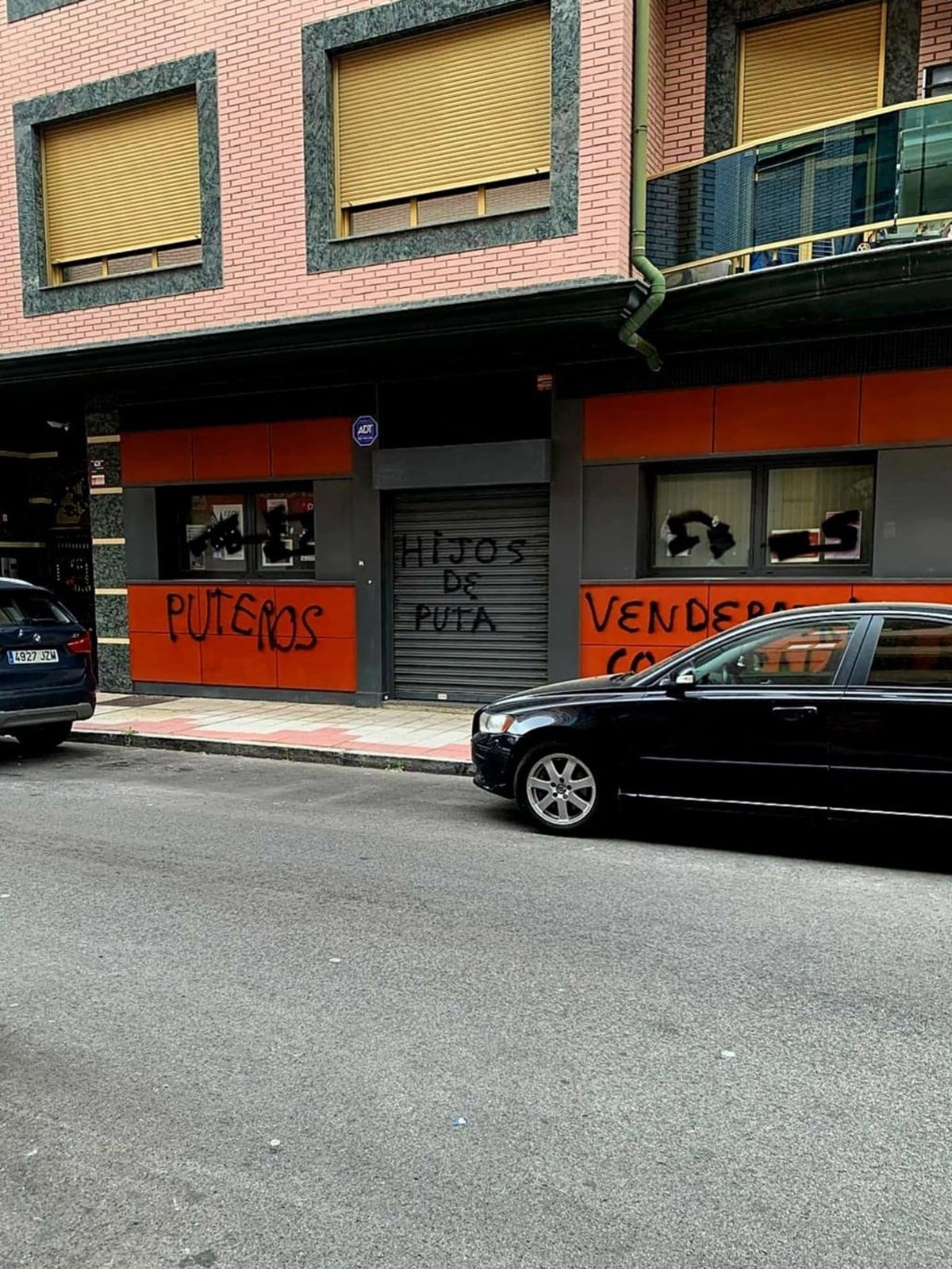 Las pintadas de la sede del PSOE de León lanzaban mensajes como "hijos de puta", "corruptos", "puteros", "vendepatrias", "sinvergüenzas" o "cocainómanos".