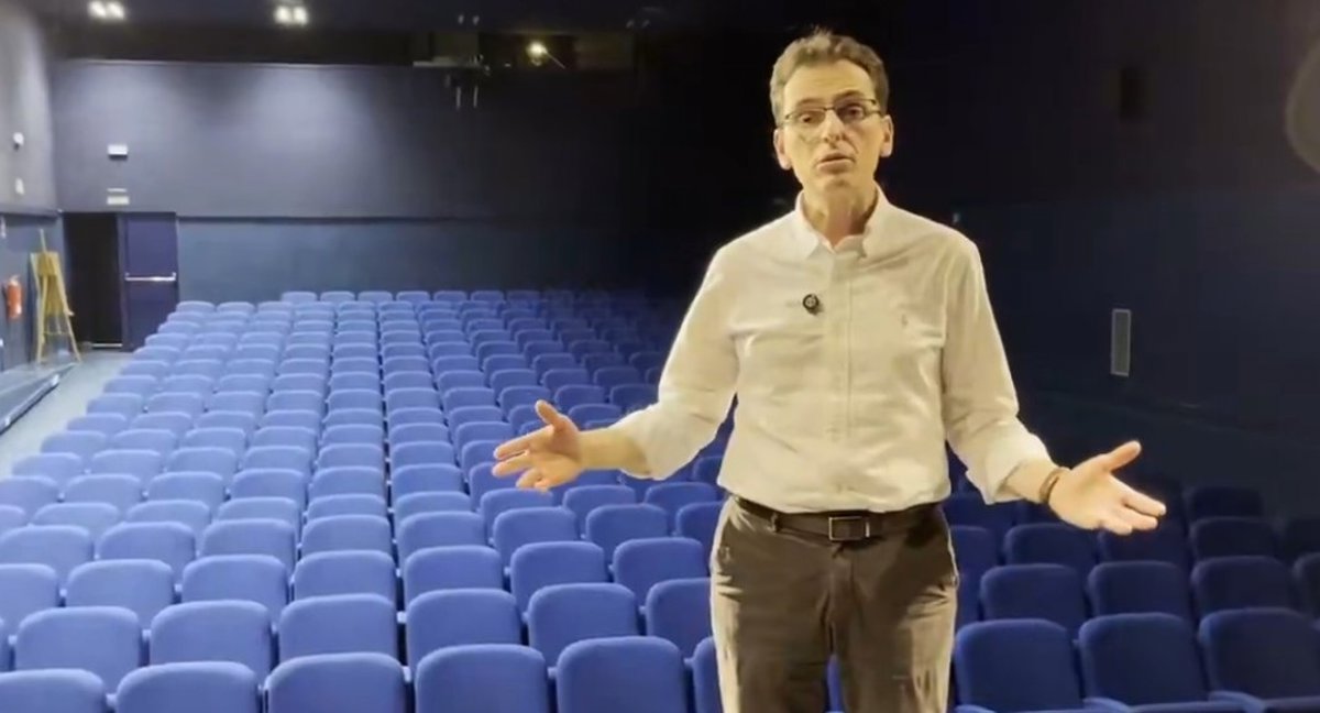 El portavoz del Grupo Municipal Socialista, Pedro Herrero, ante el auditorio vacío del Centro Cívico Zona Este. - GRUPO MUNICIPAL SOCIALISTA