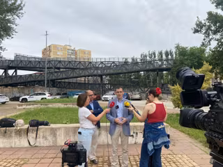 El portavoz del Grupo Municipal Socialista, Pedro Herrero, atiende a los medios de comunicación en la zona en la que se proyectan tres nuevos pasos subterráneos de la integración ferroviaria. - PSOE AYUNTAMIENTO DE VALLADOLID