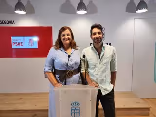 Clara Martín y Miguel Merino en la rueda de prensa. - PSOE SEGOVIA