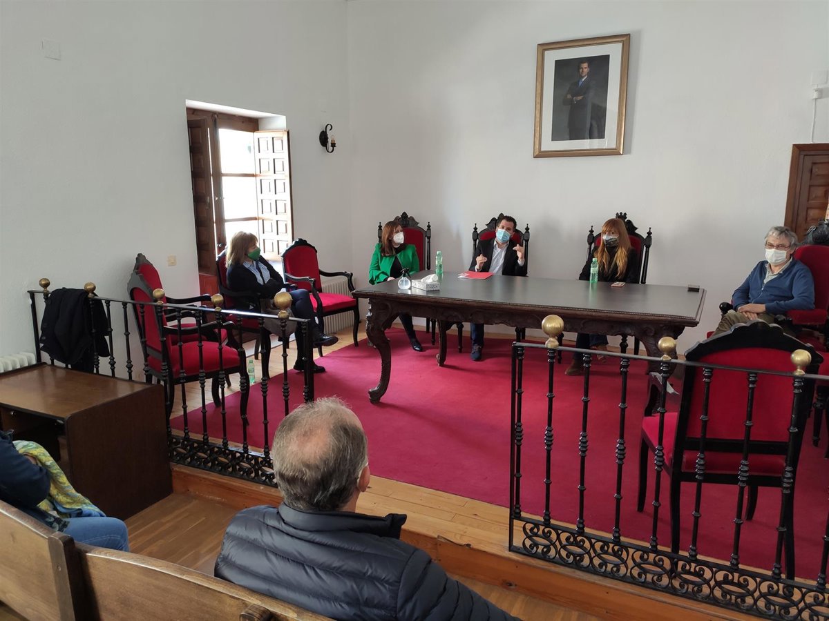 Luis Tudanca en la reunión en Ledesma con alcaldes de la zona y representantes del AMPA del colegio de la localidad. - EUROPA PRESS.