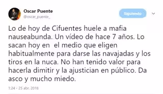 El portavoz de la Comisión Ejecutiva Federal del PSOE y alcalde de Valladolid, Óscar Puente, ha definido este miércoles como un "ajusticiamiento" de metodología "mafiosa" la filtración de un vídeo en el que la presidenta dimisionaria de la Comunidad de Madrid, Cristina Cifuentes, era requerida por un guardia de seguridad de un supermercado tras supuestamente haber sustraído varios botes de crema.