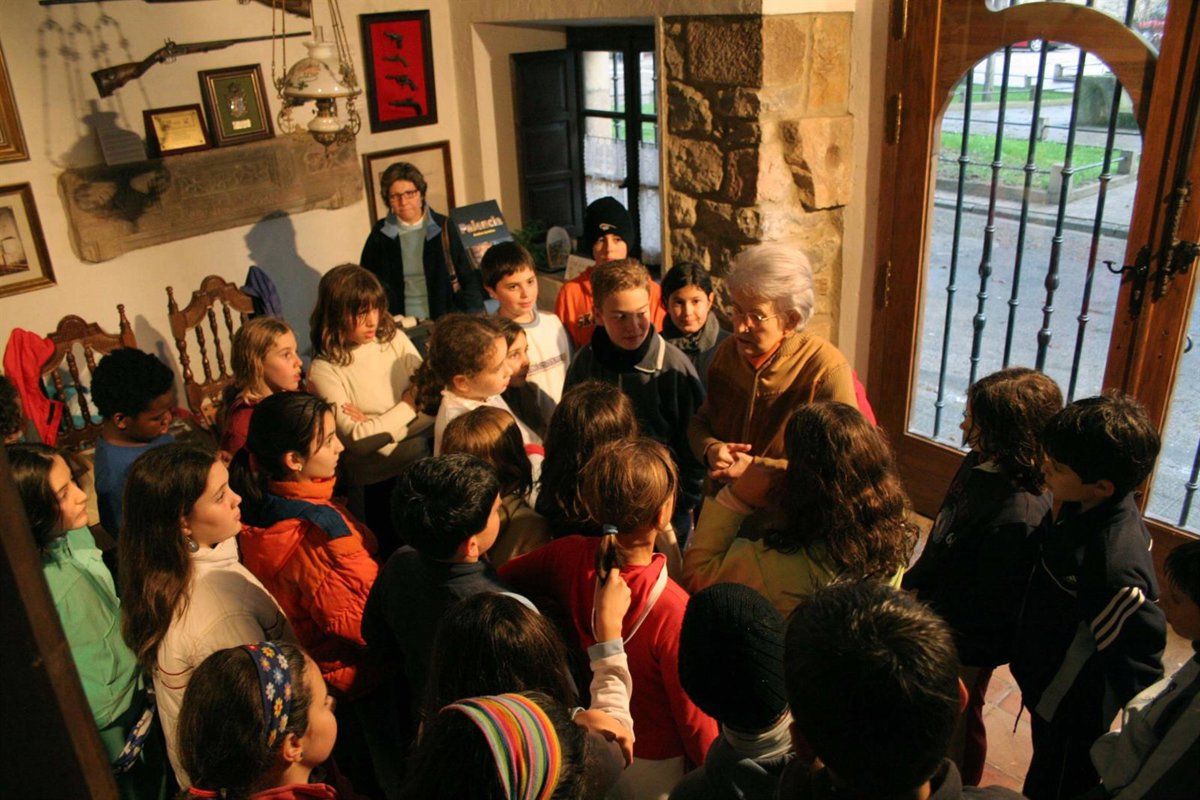 Piedad Isla rodeada de niños en la visita a su museo etnográfico en Cervera (Palencia). - FUNDACIÓN PIEDAD ISLA-JUAN TORRES
