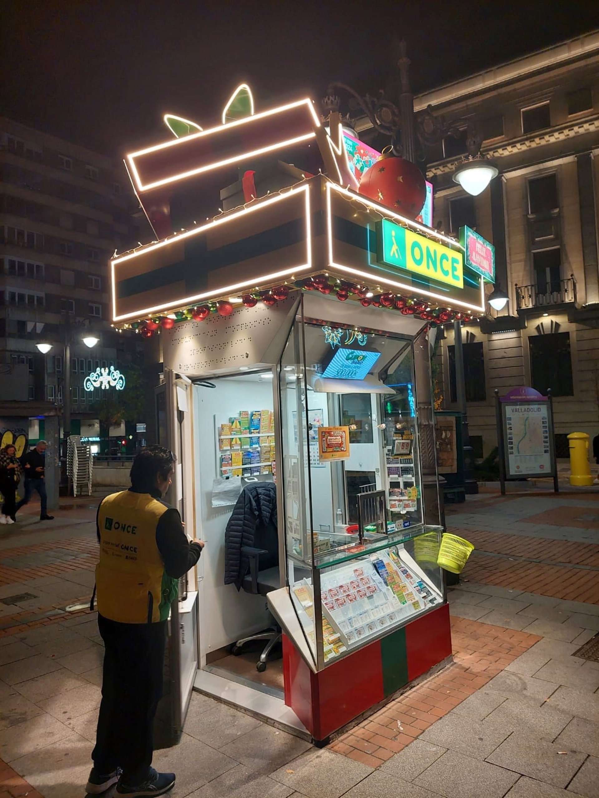 Con motivo de las fiestas navideñas, la ONCE en Valladolid ha incorporadp a algunos de sus quioscos una decoración "especial" que acompañará a la iluminación de las calles de la ciudad esta Navidad.