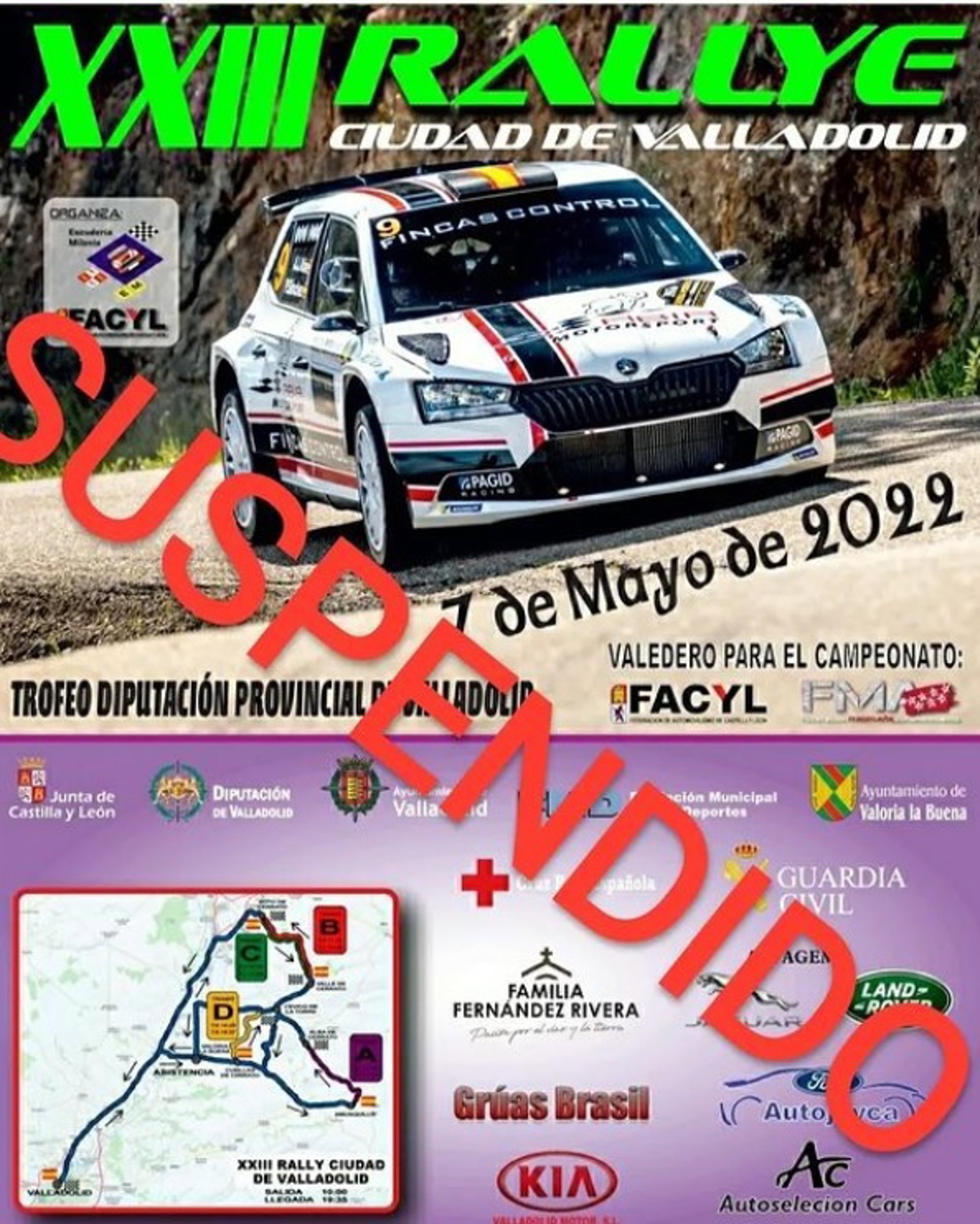 Cartel con el anuncio de suspendido de la XXIII Rally Ciudad de Valladolid - ESCUDERÍA MILENIO VALLADOLID