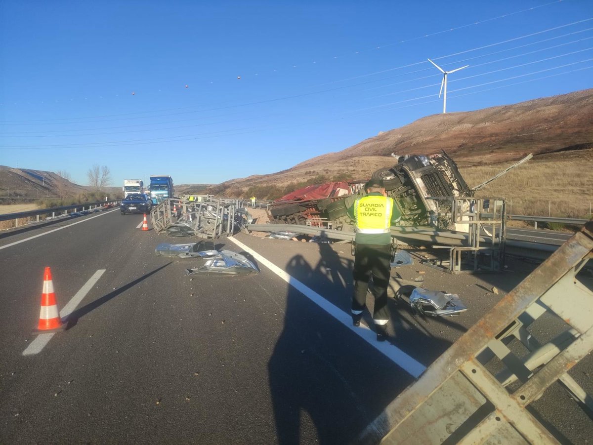 El siniestro, según han informado fuentes del 112 Castilla y León a través de la red social Twitter, se produjo unos minutos antes de las 15.24 horas de este jueves cuando han colisionado dos camiones en la autovía A-2, a la altura de Esteras de Medinaceli en sentido Zaragoza.