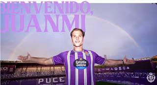 "Formado en las categorías inferiores del Real Madrid, el corpulento delantero debutó con el primer equipo blanco en la campaña 2021/22 y en las dos siguientes estuvo cedido en el Getafe CF, en la máxima categoría del fútbol nacional", detalla la web blanquivioleta de la que se hace eco Europa Press.