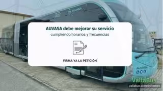 Una petición impulsada a través de la plataforma ciudadana Avaaz recoge firmas para reclamar que la empresa municipal de transporte en autobús de Valladolid, Auvasa, mejore su servicio ante la "falta de puntualidad" y el "incumplimiento" de frecuencia de las líneas, problemas que "generan frustración, desconfianza y complicaciones" en la movilidad diaria de los vecinos.