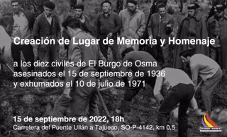 La Asociación Recuerdo y Dignidad llevará a cabo este jueves 15 de septiembre la creación de un Lugar de Memoria y Homenaje a los diez civiles de El Burgo de Osma (Soria) asesinados el 15 de septiembre de 1936 y exhumados el 10 de julio de 1971.