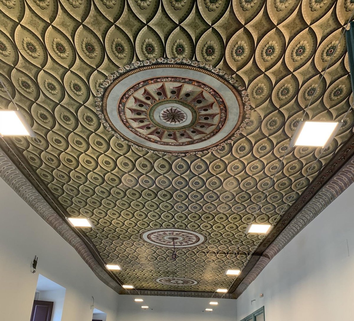 El problema fundamental que presentaban estas decoraciones era la suciedad, repintes y pérdidas localizadas por reformas e importantes deterioros debido a filtraciones. Se ha procedido a la limpieza, consolidación y reintegración del programa pictórico y en algunas salas, para recuperar el ambiente, se ha instalado un suelo de tarima inspirado en modelos de la época y se ha recuperado el acabado original de las carpinterías históricas.